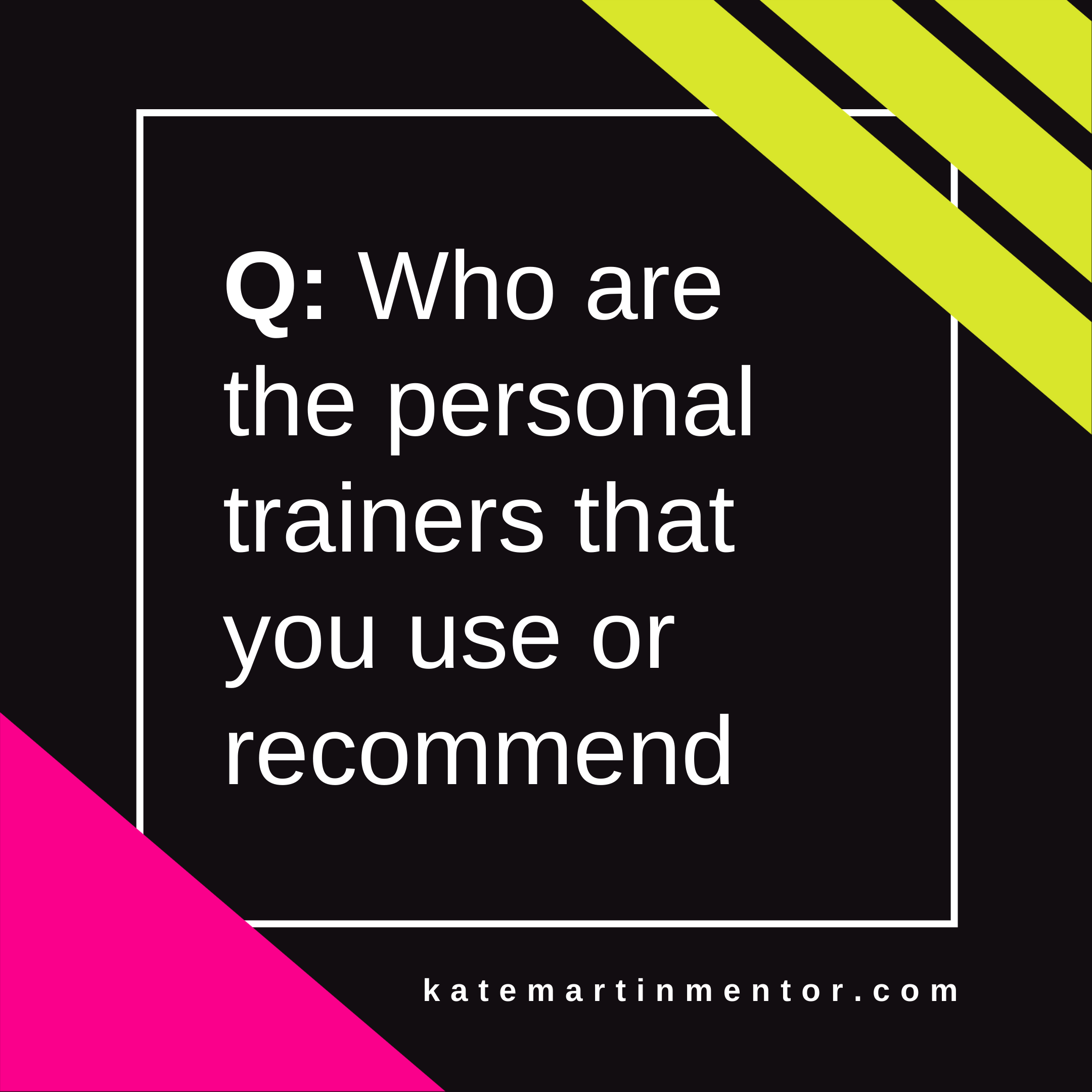 Q – who are the personal trainers that you use or recommend? And what is their location (not online). I’m often asked for great trainer recommendations either by old clients or trainers who need to refer on, in different locations and states around the country.